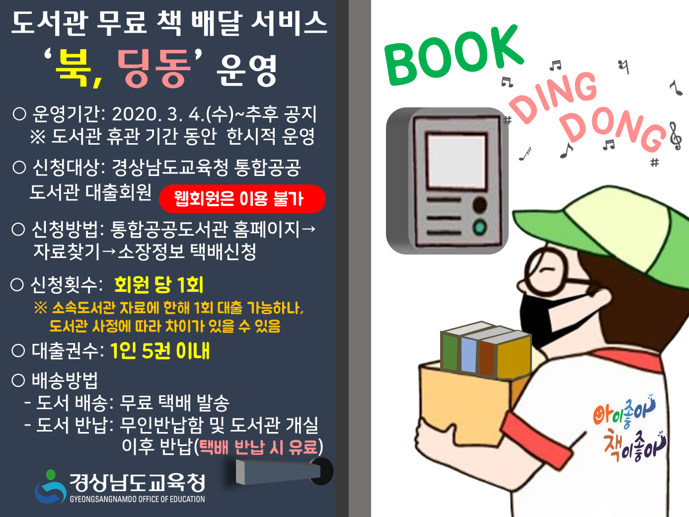 경상남도교육청 공공도서관 무료 책 배달 서비스 '북, 딩동' 안내